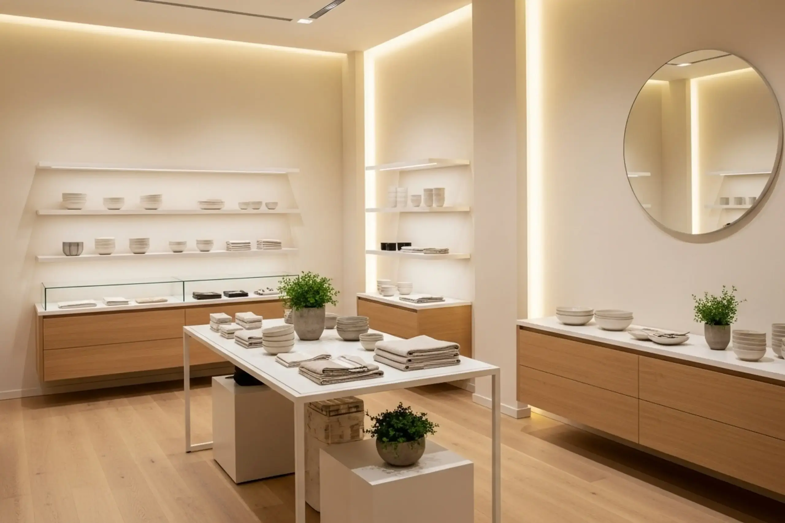 Rena montrar, glas och försäljningsytor.
